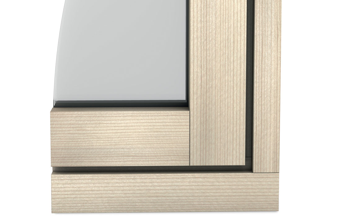 3. Konstruktiver Holzschutz Ein zusätzliches Dichtteil am unteren Teil des Rahmens schützt das Holz vor Feuchtigkeit und stellt sicher, dass Wasser funktionssicher nach aussen abgeführt wird.