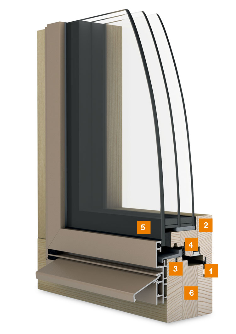 4. Nassversiegelung Innen und aussen ermöglicht die Nassversiegelung eine optimale Abdichtung. Die unsichtbare Befestigung der Glasleisten sorgt dabei für eine ästhetische, klassische Holzfenster-Optik.