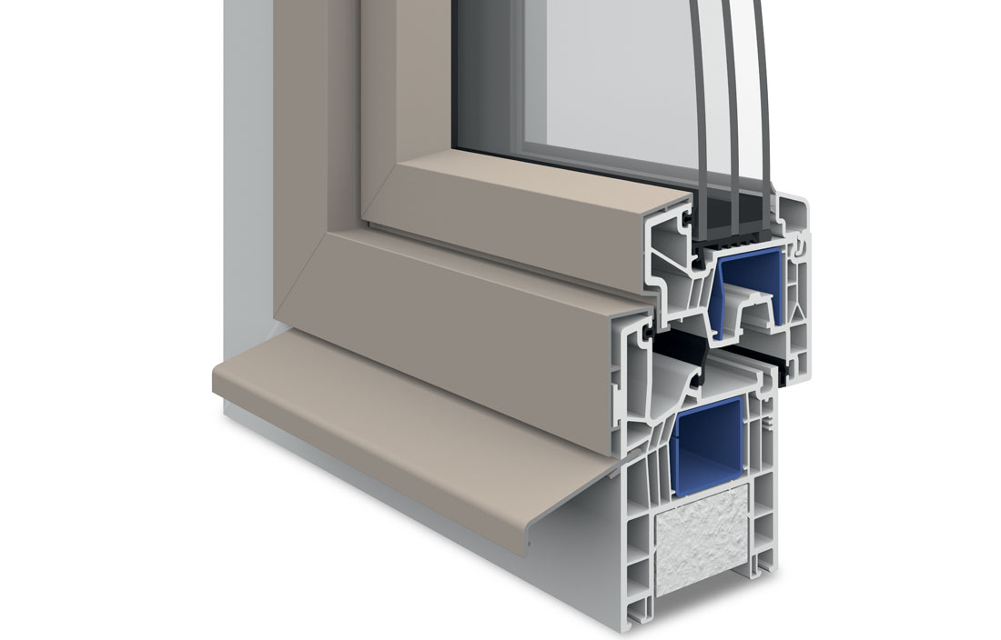 2. Spannungsfreie Konstruktion Hinterlüftete und punktförmig anliegende Aluminiumschalen verhindern ein Aufheizen der Kunststoffprofile und garantieren eine spannungsfreie Verbindung von Kunststoff und Aluminium. Dadurch verformt sich weder das Aluminium noch der Kunststoff bei Wettereinwirkungen wie Hitze oder Kälte.